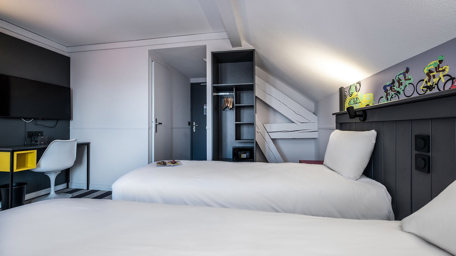 Way Back Into Love– This design hotel presents 28 well-appointed rooms and suites offering very comfortable bedding, clean design lines, and individual “Pop Art” decorations. Each headboard is a unique fresco! Most rooms are south facing and with balconies providing unrivalled views of the Oisans peaks, this vibrant hotel is just the perfect window through which to love the mountains.