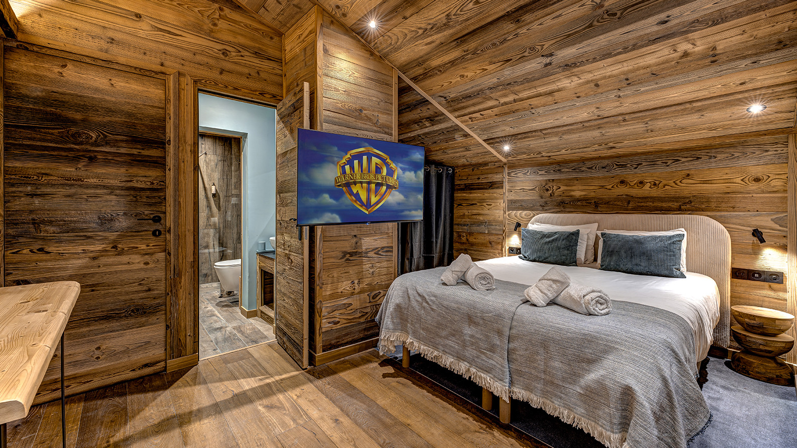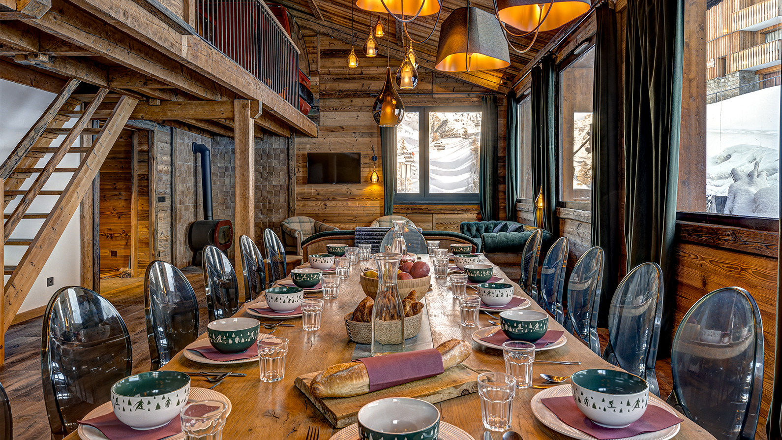 Space & Comfort - Spread over 350m2, its 7 en-suite rooms ensure comfort and privacy for all. The 80m2 living area invites guests to gather by the fire or enjoy the mountain panorama, while a stylish bar and games area add a social touch.