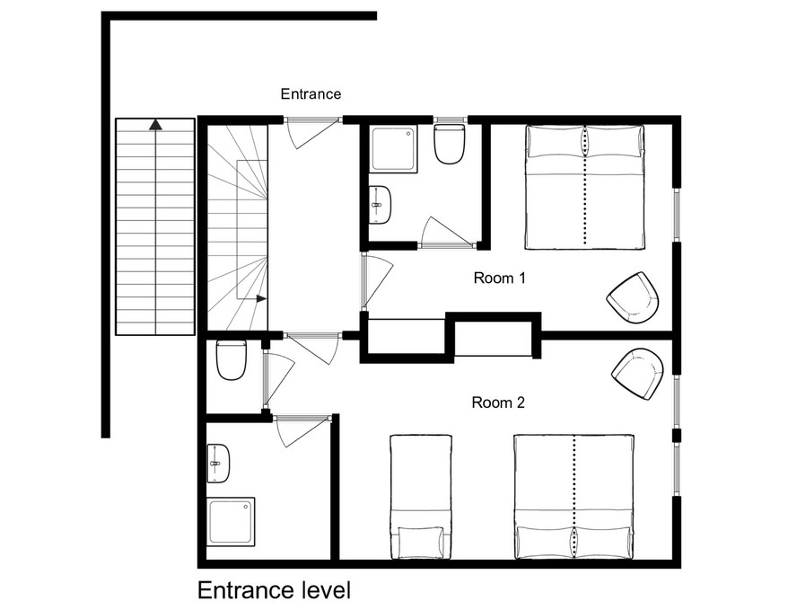 Built into the hillside as they are, the prime ski convenient location of the Mountain Flower chalets means they are built over different levels with varying means of access. Please read ‘Location and Access’ below for detailed information.