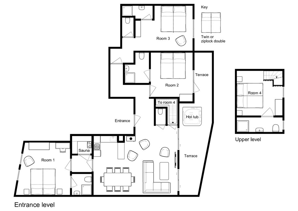 Built into the hillside as they are, the prime ski convenient location of the Mountain Flower chalets means they are built over different levels with varying means of access. Please read ‘Location and Access’ below for detailed information.