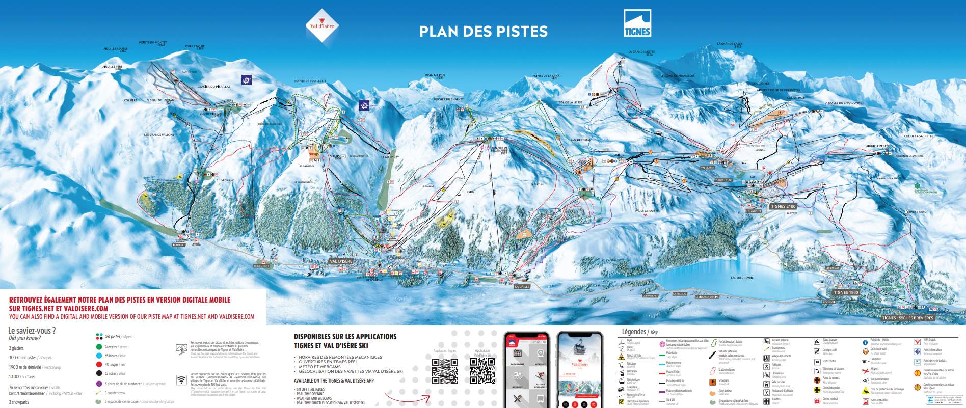 - Quality Ski Area - The size and the terrain of the Tignes-Val d'Isere Ski Area rank it amongst the best ski areas in the world, with 300km of marked piste.